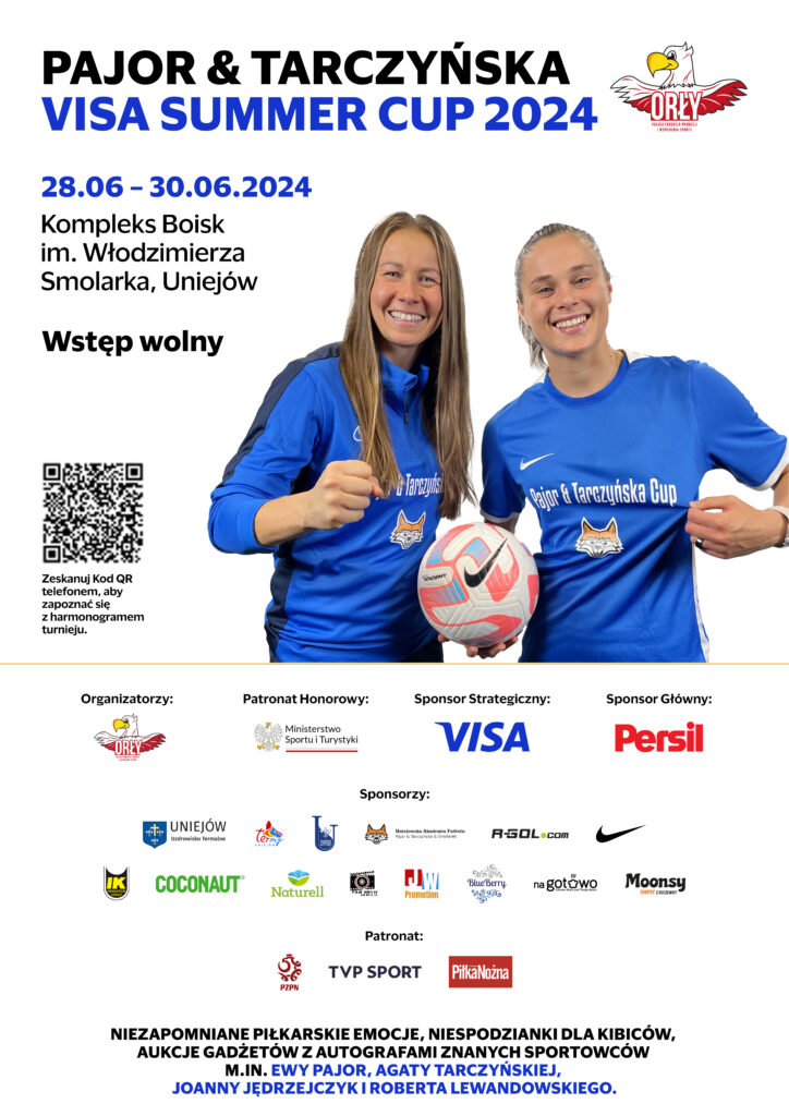 - Dla młodszych kibiców przygotowaliśmy turnieje na konsolach PS5 z wspaniałymi nagrodami! W sobotę i niedzielę podczas turnieju Pajor & Tarczyńska Visa Summer Cup 2024 rozegramy dwa turnieje w kategorii open (w turnieju mogą startować kibice, a nie piłkarki grające w turnieju) na konsolach PS5 w grę FC24! Dla zwycięzców Puchary, gry FC24 i cała masa upominków – ilość miejsc, które mogą wziąć udział w turnieju jest ograniczona! Zgłoszenia do turnieju na konsolach przyjmujemy od soboty od godziny 9:00.
